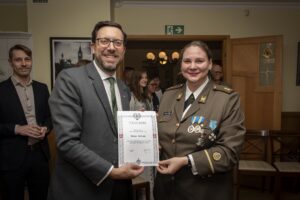 Oma aastapäeva kõnes tegi malevkonna pealik n-ltn Heidi Tormet tagasivaate oma senise 5 aastase ametiajal tehtud tööle, seatud eesmärkidele ja tulemustele, samuti veel arengukohtadele. Ühlasi otsustas malevkonna juhatus teha juhtkondades rotatsioone ja aastapäeval sai pidulikult üle antud malevkonna lipp ning juhtimine seni kompanii pealikuna tegutsenud n-ltn Martin Link´ile. Kalevi malevkond rivistas pildil ka viimased 5 eelmist ja senist malevkonna pealiku ajavahemikul 2006-2025. Heidi Tormet jätkab malevkonnas teistes rollides ning lähiajal toimub kompanii lipu üleandmise tseremoonia. Fotod: Eduard Iganus