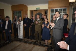 28NOV25 pidas Kalevi malevkonda oma 101. aastapäeva piduliku vastuvõtu ühe oma värskeima toetajaliikme Briti suursaadiku Ross Allen residentsis Pirital. Tunnustatud said tublimad tänukirjade ja meenetega ning annetatud 1 Kotkamärk.